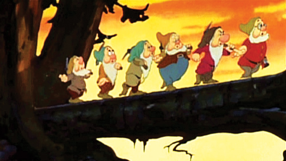 The dwarves go off to work in Disney's classic "Snow White and the Seven Dwarves." Wikimedia