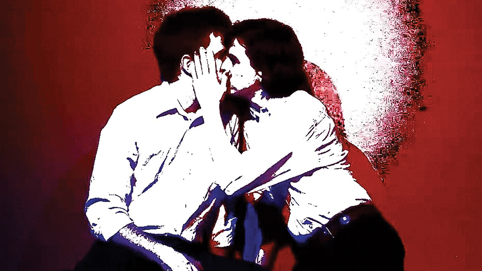 In Miles Stephen Nikander Forrester’s ‘Song of the Super-Self,’ one of ‘We Are Here To’’s most unique audio-video pieces, two men moan into a microphone held between their mouths. (Miles Stephen Nikander Forrester)