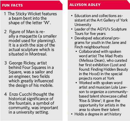 The Art Gallery of York University has been offering a guided outdoor tour of the school’s finest sculptures for many years now, running every Wednesday at noon from June until October. My knowledgeable AGYU tour guide, Allyson Adley, gave me context on some of the boldest, most ambitious sculptures on campus.