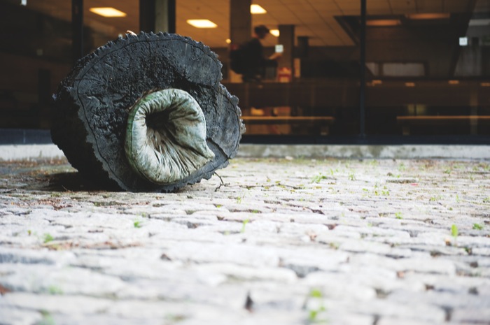 As it turns out, the wooden log in the Central Square courtyard isn’t actually a wooden log. Keep by Liz Magor (5 – Left) is a bronze casting of a log, produced in the Odette sculpture studio on campus, with a silicon casting of a sleeping bag lodged down the middle. A big theme that pervades Magor’s work is refuge and hideout in the woods, which, for her, seems to encapsulate a previous era.