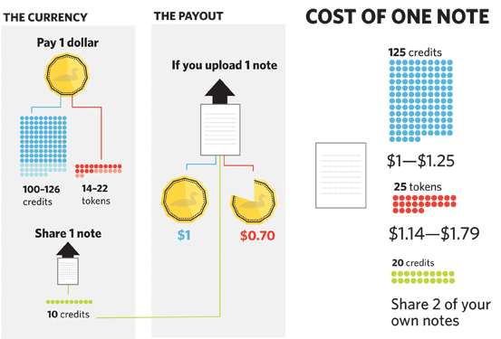 credits – things like inviting friends to join the site, reviewing uploaded notes, and having your own notes downloaded by others net you rewards in amounts ranging from five to 30 credits.