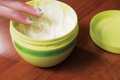 Following the bath, Kellett says it’s important to put a barrier cream on top of the wet skin immediately after the bath, and when drying off, to pat dry instead of rubbing the skin.