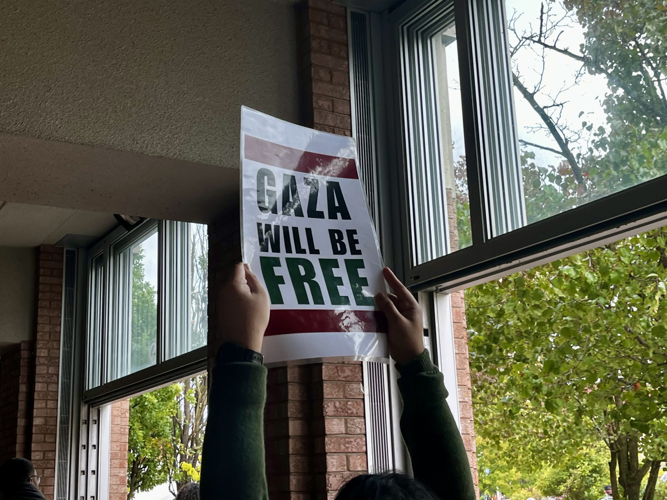 In a walkout protest organized by the Palestine Solidarity Collective (PSC), alongside the Muslim Student Association (MSA), several students gathered on the second anniversary of the Gaza war to speak out against Zionism, York University’s financial dealings, and the Aroma Espresso Bar cafes on campus. The protest coincided with “Kuffiyeh Week,” described by PSC as a “collaborative initiative with university clubs across Ontario to showcase our united solidarity with the Palestinian people and raise awareness.”