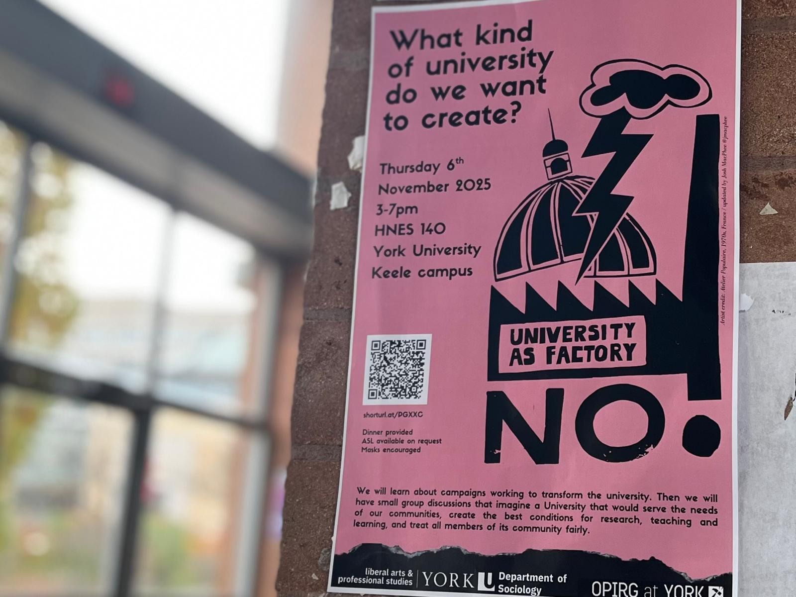 On Nov. 6, the Ontario Public Interest Research Group’s (OPIRG) York University branch hosted its “The University is Not a Factory” event in Health, Nursing and Environmental Studies (HNES) 140. The meeting brought together students, faculty, staff, and members of the community.