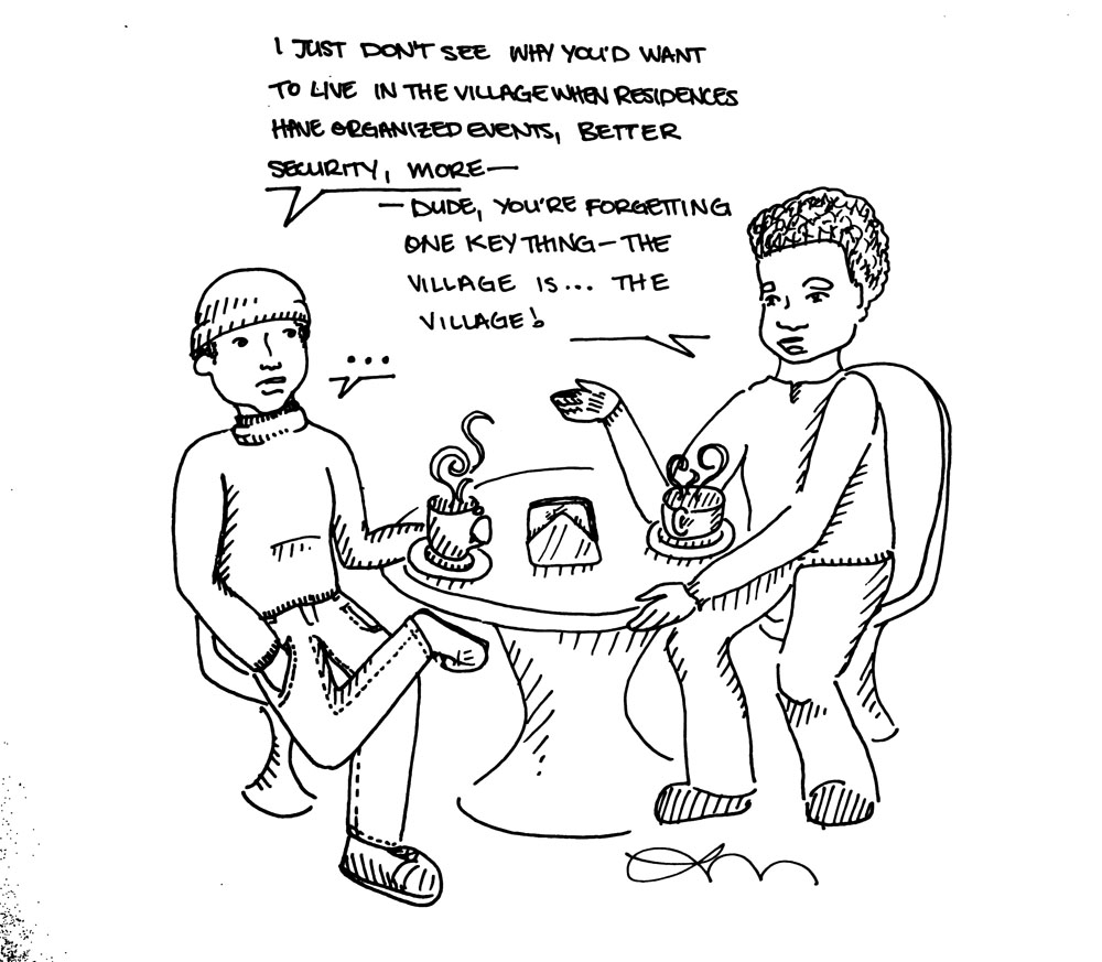 In her article, Kate uses words like “crime” and “inadequate living conditions” to describe the village. In my third year in residence two people had their laptops stolen when they went to the bathroom leaving their doors unlocked. I witnessed multiple drunken brawls in the hallway outside my room, and more than one York University student living in residence has been attacked in their supposedly “safe” building. While living in the village I have never felt unsafe in my home. Mostly because, living in a house with only myself and close friends, I have more control over who can come in my house. Even in an apartment building, if your neighbour is having a party, at least their guests are not using your living room, kitchen or bathroom. And if you have rowdy neighbours or feel your safety is threatened, those responsible have to deal with the Toronto police, rather than the threat of a stern lecture from the don on duty.