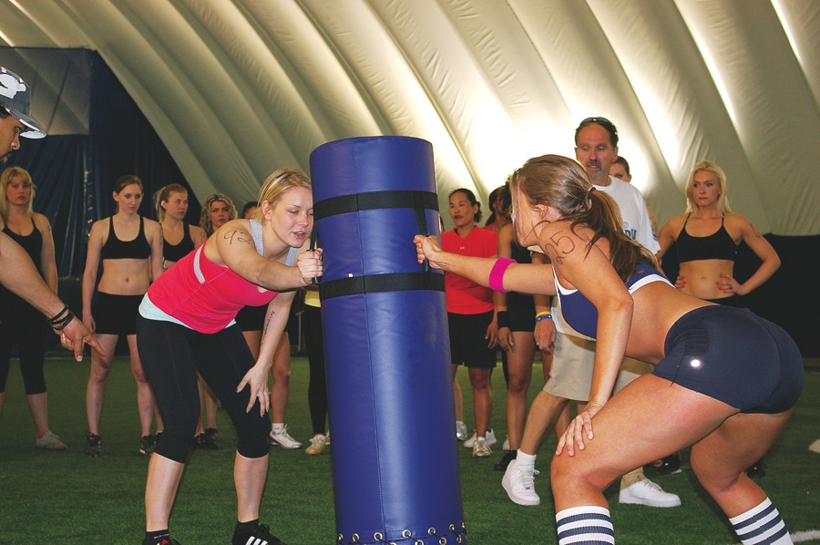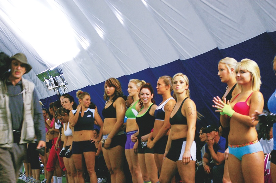 About 140 women showed up for tryouts in Toronto at the end of April. With lots of hype in the local papers, Mitch Mortaza, owner and founder of the American Lingerie Football League was on hand. He seemed to be running the whole show, with some promising future coaches, recent university players as well as high school coaches helping with the tryouts.