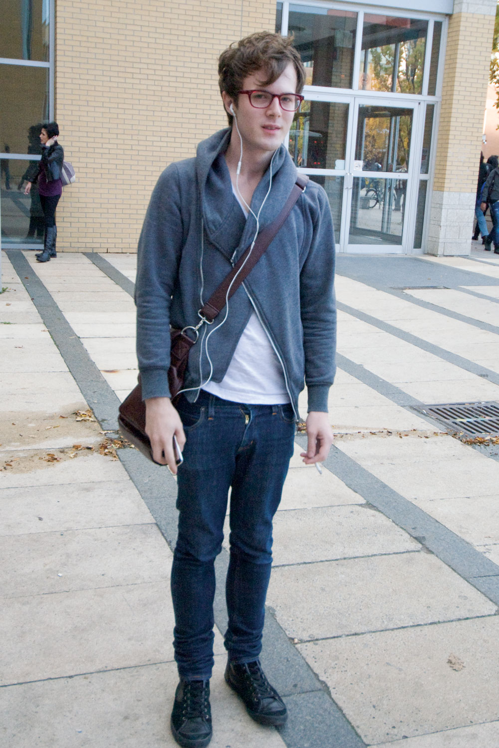 As the sun was setting over campus and the wind began to pick up, I noticed a bright red sweater and incredibly understated white sneakers. I introduced myself to a fourth-year student with a taste for crisp and clean fashion.