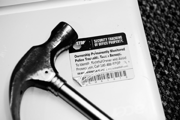 Kilfoyle added that even if the stickers are scratched away, the laptop surface underneath would bear a fade-proof tattoo-like imprint that says, “This property is stolen,” just above a 1-800 phone number that can be called to turn in stolen laptops.