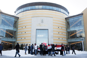 Close to 40 students braved the biting cold, raising chants for democracy in Egypt and calling for President Hosni Mubarak to step down from his 30-year regime immediately. The rally, prepared by the Middle Eastern Student Association (MESA), took over a week to organize. The members of MESA and their supporters followed the lead of vice-president Mohamad Hneinou, who led the group from York Lanes to Vari Hall to the
