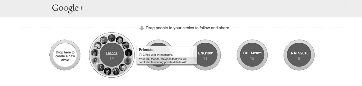 With G+’s “Circles” feature, users are encouraged to group contacts according to association. Posted content can be controlled; only certain individuals or circles can view it. This means pictures of your cat and questions for your tutorial group can exist on the same social network without coming into conflict.