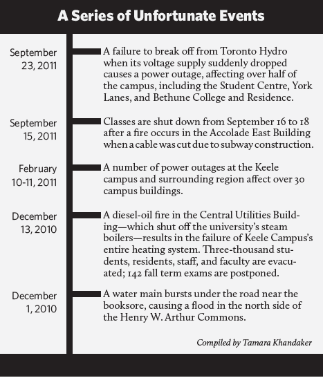 To add to a list of mishaps which have occurred since the start of the TTC subway construction, a water main burst September 29 and temporarily cut off water supply to the Schulich building.