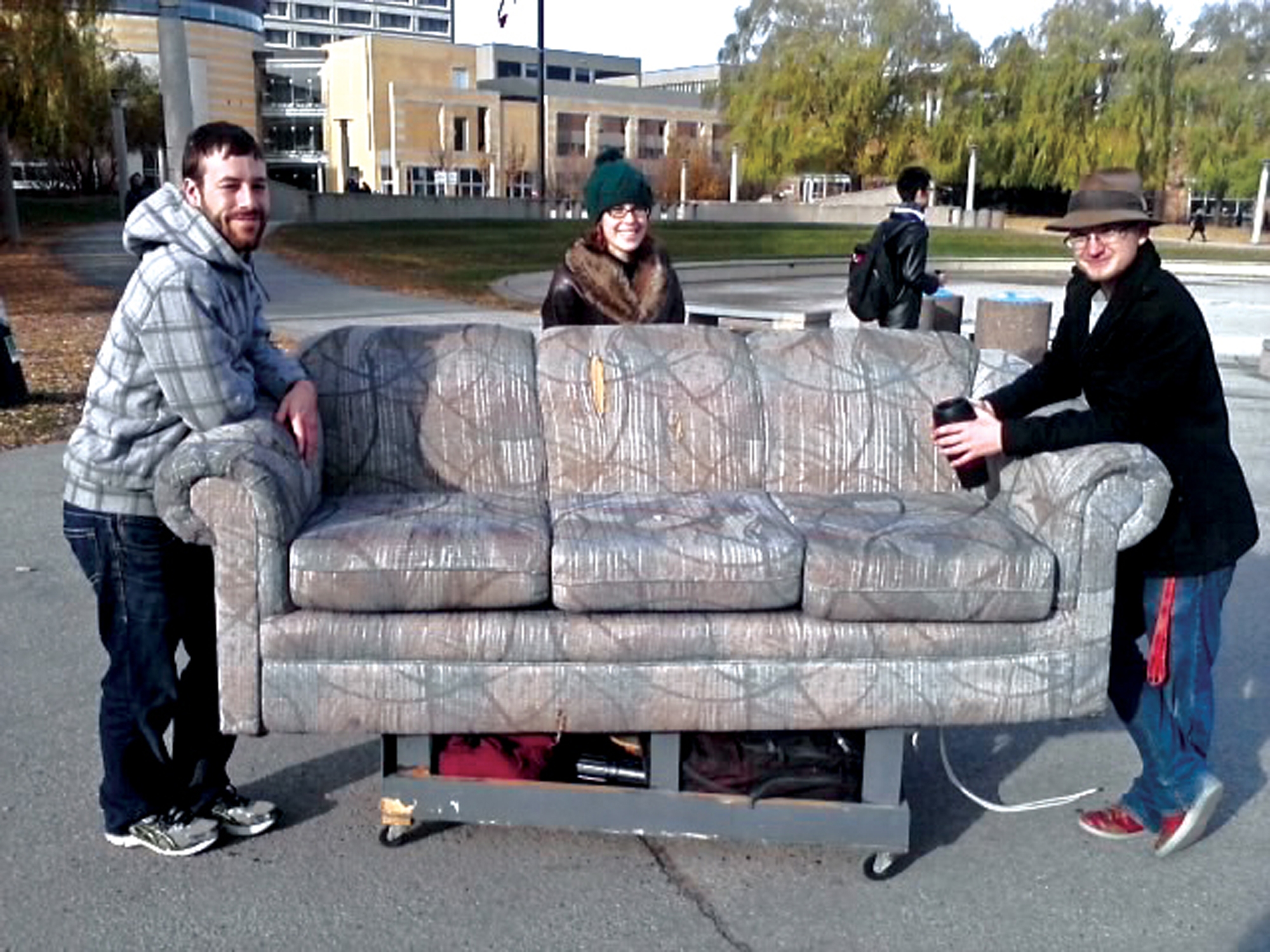 One early morning on Keele campus, a group of students heaved and pushed a couch through the Harry W. Arthurs Common. The couch—the early birds say—is to be used for a Vanier College production.