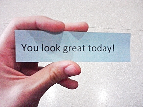 “One person returned the slip with a positive message of her own on the back, another returned to give me a handshake and a friendly hug,” she recalls. “Another looked back and said ‘thank you.’ Why should interacting with other students in such a simple way be so out of the ordinary?”