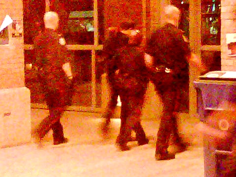 Police lead away the accused, who locked himself in the Hill’s restroom for approximately two hours. - Ana Rancourt