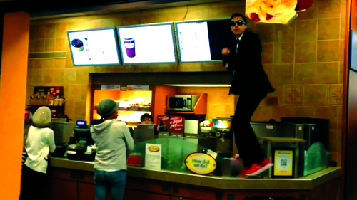 David Kim gets down Gangnam-style up on a Tim Horton’s countertop. – Youtube.com